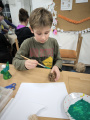 Náplní dnešního výtvarného odpoledne byla výroba vánočních ozdob a dalších menších dekorací. Děti pomocí tavné pistole, kousku dřeva a šišek andělíčky vykouzlily v klubovně vánoční atmosféru raz dva