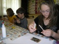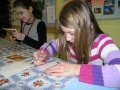 Tentokrát se vyráběly obrázky z pohlednic. Nejprve bylo potřeba vybrat si jakékoliv dvě stejné pohlednice a poté přišlo na řadu stříhání, lepení a zdobení.