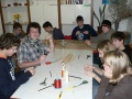 Bude to znít možná divně, ale vyráběli jsme draky. Ano, už je to tak. Jde taky hlavně o to, že další schůzka bude probíhat venku. Bude to pouštění draků na (jak doufáme) zasněžené pláni u lesa "Benčák" za bubla city ranchem. Během schůzky jsme měli jediný a náročný úkol. Sestrojit létací stroj z dostupného náčiní a při tom doufat, že naše aerodynamické myšlení nepřišlo v niveč. Během 2 hodin zvládla většina draka sestrojit. Pracovní postup se dodržoval, ale chápání měr u některých dalo za vznik, mírně řečeno, kubistickým patvarům, u kterých samotný let bude zázrakem. Takže asi pozveme komisaře z knihy rekordů...