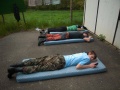 Studna se začala vypouštět a opětovně napouštět hned v sobotu ráno. Čištění probíhalo opakovaně a podle plánu a tak se naši páni kluci pustili do izolační místnosti, kterou se jim nakonec povedlo opravdu předělit na dvě poloviny. Jiná skupinka si vzala za úkol zlepšit dětem prostředí na dřevišti a zajistila novou nosnou konstrukci, která bude dokončena na stavbě tábora. A copak dělaly dámy? Vařily dobrá jídla a umývaly nádobí, zašívaly děravé matrace a malovaly vstupní chodbu, část jídelny i onu nově vyfiknutou izolaci. Počasí bylo smířlivé, svítilo sluníčko a také bylo pod mrakem.