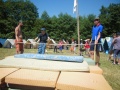 Léto je tady a my konečně zas na Olbramu. První skupina vyrazila hned po vysvědčení 30. června, aby za 5 dnů stál na zelené louce kompletní tábor včetně vybavení (kuchyň, zbrusu nová umývárna, vodárna u studny a všechny stany). Úmorná vedra panovala již na stavbě a je třeba skutečně ocenit nadšence, kteří se jim nepoddali a tábor postavili včas. Díky!