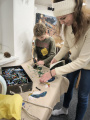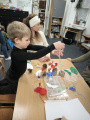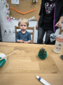 Náplní dnešního výtvarného odpoledne byla výroba vánočních ozdob a dalších menších dekorací. Děti pomocí tavné pistole, kousku dřeva a šišek andělíčky vykouzlily v klubovně vánoční atmosféru raz dva