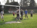 Rozdělili jsme se na dvě družstva a začali hrát. Hra byla svižná a nikdo se nenudil ani v poli, jelikož míčky lítaly skoro pořád.