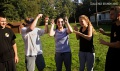 Po vydatném obědě jsme nechali vytrávit žaludky deskovkami, spánkem či povídáním. V podvečer jsme nakoukli do tajů konspiračních teorií a zkusili si sami nějaké vymyslet a přesvědčit o tom ostatní. Po vydatné večeři jsme byli rozděleni do dvou velkých partyzánských skupin a byli jsme naloženi do aut. Po vysazení na neznámém místě jsme dostali první instrukce. Úkolem bylo se nepozorovaně dostat do hlídaného komplexu, kde byl lék na pandemovou nemoc, kterého jsme se museli zmocnit. Bohužel ne vždy jde vše podle plánu, a tak jsme byli zpozorováni. Vypustili na nás psy, které jsme setřásli během v řece. Tím psi ztratili naši pachovou stopu. Lék úspěšně získaly obě skupiny.