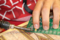 Jako každý rok jsme měli nachystaných mnoho výrobků pro děti. Každý měl tedy možnost zaškrtnout si v tabulce výrobek, který chce stavět. Jelikož děti ne vždy odhadnou své možnosti, tak na řadu přišel startovací výrobek - házecí kostka. Tu si po zapájení každý očísloval. Na nás pak zbyl úkol nejtěžsí, přiřadit dětem výrobky podle jejich pájení - buď měly na výrobek, který si zaškrtly, nebo jsme se s nimi domluvili na lehčí variatě.
