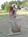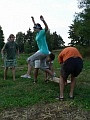 Když jsme přijeli na základnu, byli jsme příjemně překvapeni tím, že osazenstvo třetího turnusu již s bouráním začalo. Ihned jsme se vrhli na pomoc, abychom se necítili zahanbeni. V mžiku byly takřka všechny stany bez celt, čímž se z nich staly kabriolety v tom pravém slova smyslu. Úhledně složené celty se tak mohly naložit do čekajícího autobusu, protože se do příštího roku musí nechat naimpregnovat. Na konci dne nám tábořiště připomínala jen světlá místa v trávě. Kromě práce nám zbyl čas i na zábavu a hry, takže díky předem připravenému harmonogramu jsme se ani chvíli nenudili. Postupem času se víc a víc věcí přestěhovalo do budovy, a tak jsme si dopřáli oddech v podobě návštěvy jevišovického bazénu a bowlingu.