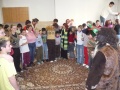 Po příjezdu do druhého domova jsme byli přivítáni dalšími dětmi, které nám ukázaly jejich obydlí. Následně jsme se všichni sešli ve společenské místnosti, kde proběhlo další rozdávání dárečků. A aby v tom děti nebyly samy, i my jsme zazpívali pár vánočních koled a ke zpěvu se později přidaly děti i paní vychovatelky. A aby jsme ukázali vychovatelkám, jak jsme s dětmi sehraní, hráli jsme společně kolové tance, zpívali táborové písničky, které se děti naučily u nás na táboře.