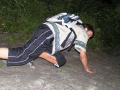To, že by náš problém na Trúbě vyřešilo hravě páčidlo, došlo všem, až když vyšlapali dlouhou řadu schodů, vedoucích z náměstí. Vracet se nemělo význam. Při řešení směru naší zpáteční cesty se riskovaly životy na skalnaté klouzačce poblíž a jelikož pionýr je tvor velice zdatný a odolný, náhodou se nikomu nic nestalo. A tak jsme se rozhodli pro odvážnou cestu skrz černé lesy Bělohorského průsmyku. Moderní komunikační nástroje všem pomohli ke zdravým kotníkům ve tmě, na kamenitých cestách. Předposlední zastávka byla na jedné dětské prolézačce, kde se ve vší vážnosti probrali poslední detaily našeho táborového snažení.