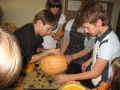 Začali jsme trošičku později než bylo v plánu, po 18 h, a roztřídili se do družstev - BE, BEBE, BEBEBE a BEBEBEBE, jelikož programem provázela černá ovce Pionýra (vedoucí Nezmarů). Hráli jsme několik her mezi týmy, kdy jsme tančili, skládali jsme se na sebe do forem mutanta, vyřezávali z dýní a zpívali. V průběhu programu se vyhodnotily nejpěknější masky, proběhla diskotéka a nechyběl ani výklad o Halloweenu od Kamči.
