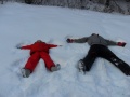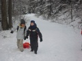 Po chvilce odpočinku, snězení svačiny z domova, nespočtu fotek a nákupu pohledů pro babičku, nastal čas vrátit se ,,zpátky na zem“. Děti si sebou na Javorník nabalily nejen svačinu, něco sladkého, teplý čaj, ale i boby a lopaty na cestu dolů, ta tedy probíhala o něco svižněji. Kluci na bobech sjeli kopec, jako kdyby byli na závodech a holky chytře svázaly lopaty k sobě a využily ručního pohonu jedné z vedoucích.