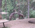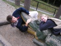 Hned na začátku trasy nás přivítaly opice, které předváděly své akrobatické kousky a ještě k tomu vše hlasitě komentovaly. Alana zlákala dočasná expozice dravců. Potom jsme se šli podívat na žirafy, které se ovšem soustředily spíše na snídani než na zvědavé návštěvníky, a do minipavilonu plazů. Z vyhlídkové věže jsme se místo výhledu na zvířenu přesvědčili o tom, že přes mlhu je špatně vidět. Přesto jsme však spatřili alespoň stádo přímorožců a opodál smečku gepardů. Vrcholek věže se dost houpal, a proto jsme usoudili, že člověku je opravdu lépe na pevné zemi! Poté jsme se mrkli na klokany a zamířili k velbloudům. Původní nezájem z jejich strany se změnil ve chvíli, kdy Simča vytáhla z batohu banán. Velbloudi se střelhbitě přihrnuli co nejblíže k nám, jako by ucítili Poděbradku.