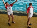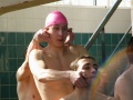 V sobotu následoval nejnáročnější úkol celého školení. Museli jsme absolvovat záchranářský kurz. Takže jsme se po obědě (pro některé hodně vydatném :D ) vydali na bazén, kde jsme plavali celé tři hodiny. Naučili jsme se jak správně uchytit tonoucího, jak ho odtáhnout a vytáhnout z vody. Všechno jsme si nejenom řekli, ale také vyzkoušeli. Na závěrečnou zkoušku jsme každý museli jednoho tonoucího vytáhnout z vody. Pro některé z nás to bylo velmi náročné. Když nás pan školící konečně propustil, všichni jsme si s radostí oddychli.