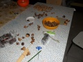 Po návratu do klubovny jsme se opět pustili do práce. Každý z nás už určitě někdy vyráběl zvířátka z kaštanů a žaludů. A tak když si děti rozmyslely co vytvoří, přišli na řadu vedoucí, kteří vyvrtali potřebné díry pro špejle. Poté už stačilo vše jen spojit či slepit a po chvíli se na stole začaly hromadit zvířátka, postavičky, květinky, zajíčci, či dokonce palma na pustém ostrově.