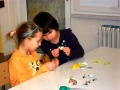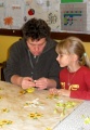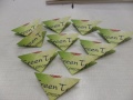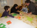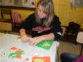 Postup byl docela jednoduchý a všichni ho hravě zvládli. Každý si nejprve vybral sadu 8 stejných sáčků, už tedy spíše jen vystřihnutých barevných předních stran, a z nich se pak poskládal buďto trojúhelník nebo čtverec, známé to tvary ze skládání origami. Tyto čtverečky a trojúhelníčky se pak stavěly podle přesného návodu do různých vánočních motivů. Nejčastěji se u nás objevoval vánoční stromeček a hvězdičky všeho druhu. Barevnou mozaiku si pak každý nalepil na už předem vytvořené přáníčka a dozdobil podle vlastních představ.