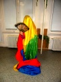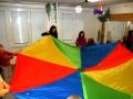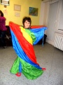 Protože nám zbylo ještě dost času a nikomu se nechtělo domů, vytáhl se oblíbený „padák“. Nejprve se nechal každý do něj zabalit, naaranžovat v divotvorné strašidýlko a ještě zapózoval naší fotografce. A pak jsem si s tou barevnou plachtou zahráli několik parádních her.
