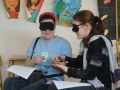 Všechno ale předčily a vynahradily workshopy zaměřené na práci se slepými, případně hluchoněmými-slepými lidmi. Měli jsme možnost vyzkoušet si jednoduché pomůcky každodenní potřeby (které vůbec jednoduché nebyly), Lormovu abecedu, chůzi se slepeckou holí, zkrátka spoustu věcí, která je pro část lidí naprosto běžná a která pro nás znamenala nepřekonatelnou překážku. Právě z těchto diskuzí a demonstrací si ale odnáším nejhlubší zážitek.