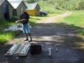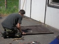 Sušák na prádlo jsme poopravili a holky se v tento parný den pustily do umývání světel. Bezpečnější je teď i přístupová cesta na klučičí záchodky, kde přibylo zábradlí.