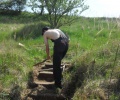 Začali jsme s okenicemi, které si po mnoha letech používáni zasloužily nový nátěr. Kluci se mezitím pustili do odkopávání schodů, které vedou ke vsakovačce. Jelikož byly po mnoha a mnoha letech pořádně zarostlé trávou, musely se znovu zpřístupnit. Bylo třeba také vyčistit samotnou vsakovačku, ze které bylo vybráno na 4 desítky lžiček.