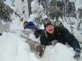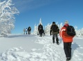 Přes prvotní obavy z nedostatečných zásob sněhu byli naopak všichni potěšeni, že i této suroviny se na naší akci dostavilo dostatek. Pod vrcholem došlo k rozhodnutí, že se půjde cestou náročnější a kratší. Stoupání zvládali vesměs všichni na výbornou. I přes teorie, že se Javorník rok od roku zmenšuje, bylo jasné, že cesta utíká rychleji, poněvadž jsme rok od roku lepší a lepší kopcolezci. Mira a Mara se cestou na vrchol stále koupali v závějích i přes naše upozornění, že jim cestou dolů může být zima. Ale nebrali nás vážně, lamy.