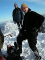 Při výstupu na samotný vrchol nás učaroval pohled na okolní krajinu. Bylo jasno a tudíž krásno. Z vrcholu jsme mohli vidět i Praděd, který je cca 70km vzdálený. Každému hned bylo jasné, že tento výšlap patřil počasím a náladou mezi nejlepší. Před chatou jsme se věnovali skupinovým i párovým fotografiím a do chaty jsme nešli vůbec. Při pohledu na tlačenici a vydýchaný lokál bylo jasné, že postát na zimou zkrásněném prostranství venku je jasná volba. Zelňačku a další dobroty dělají i pod kopcem. A tak se taky stalo.
