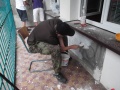 Začalo se s plným nasazením. Vrhli jsme se na novou fasádu klubovny. Kluci to nabělili z venku a holky si vyhráli se žlutou barvou uvnitř.