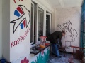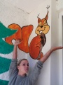 Na klubovnu se nakreslily obrázky, tak aby se tam děti hned při příchodu cítili příjemně.